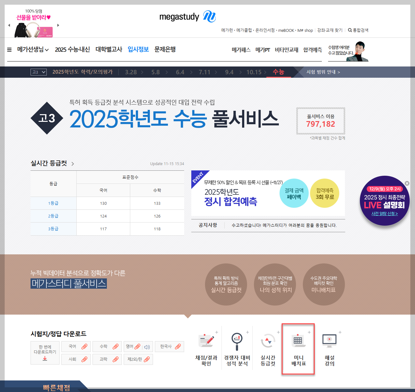 2025 수능 풀서비스>미니배치표
