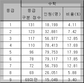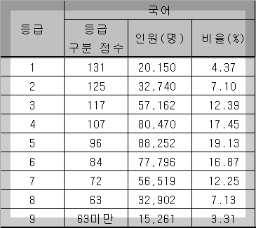 | 영어 등급별 비율 | 1등급 (90점 이상) | 2등급 (80점 이상) | 3등급 (70점 이상) |